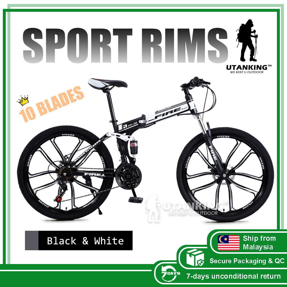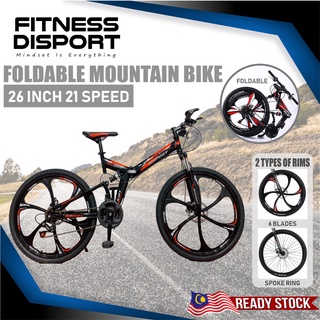 26 Inch Wheel 21 Speed Gear Foldable Mountain Bikes Double Suspension Mtb Road Bike Disc Brake Folding Bicycle Basikal Shopee Malaysia